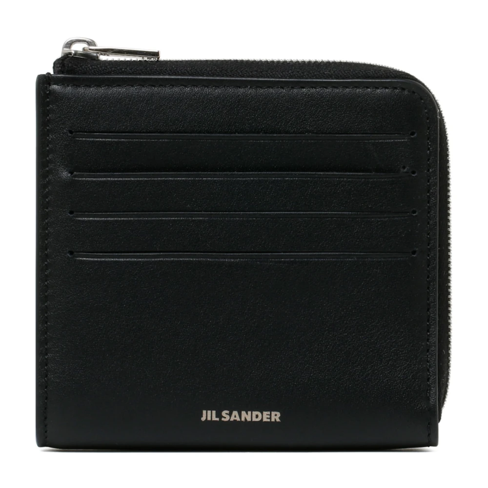 Upgrade je accessoirecollectie met deze stijlvolle zwarte leren portemonnee van Jil Sander. Speciaal ontworpen voor mannen, met een zilverkleurig logo op de voorkant en een handige ritssluiting. Gemaakt van 100% Pelle Di Vitello, straalt deze portemonnee luxe en stijl uit