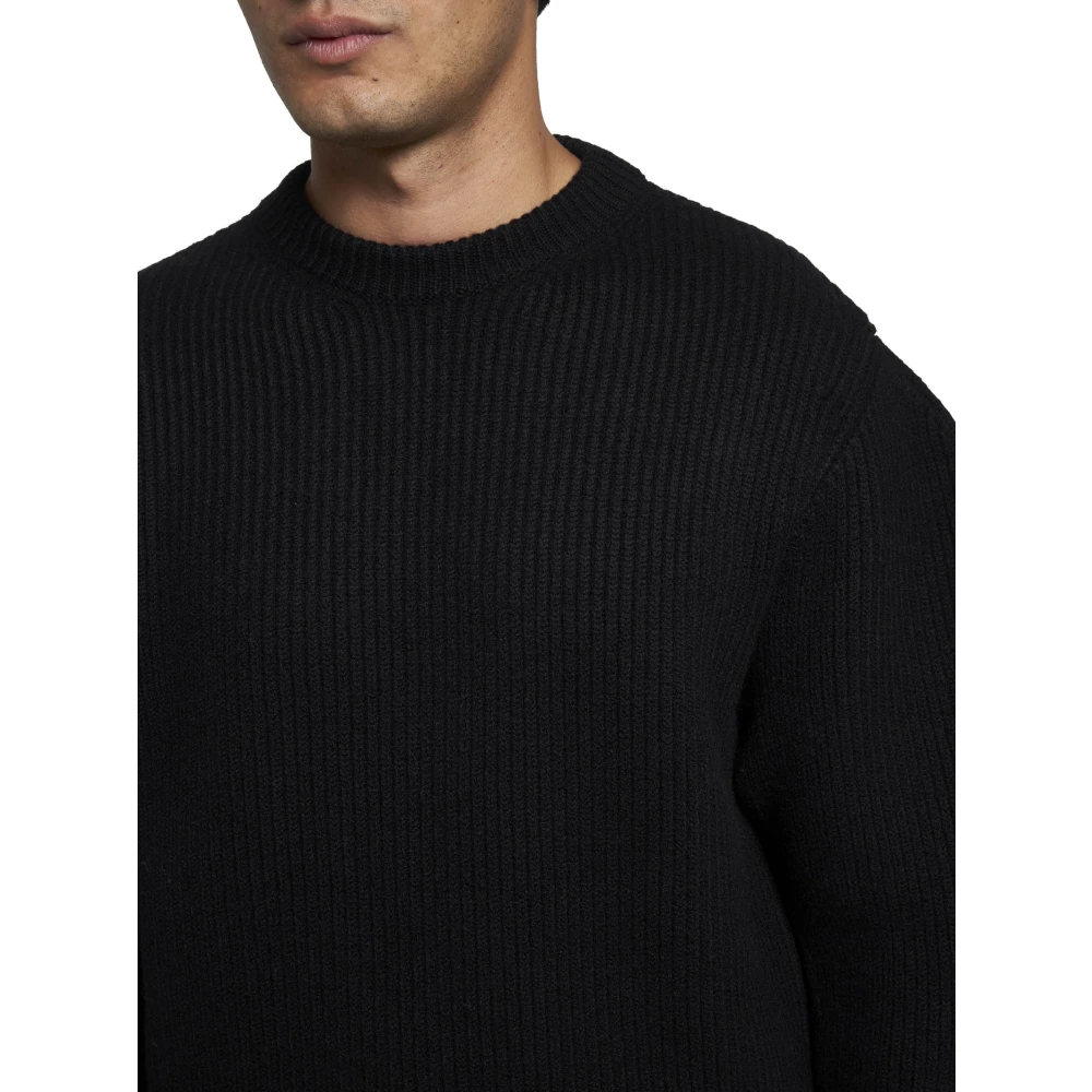 Upgrade je wintergarderobe met deze luxueuze zwarte truien voor mannen van Jil Sander. Gemaakt van 100% wol, zijn deze ronde-hals knitwear stukken perfect om warm en stijlvol te blijven gedurende het hele seizoen.