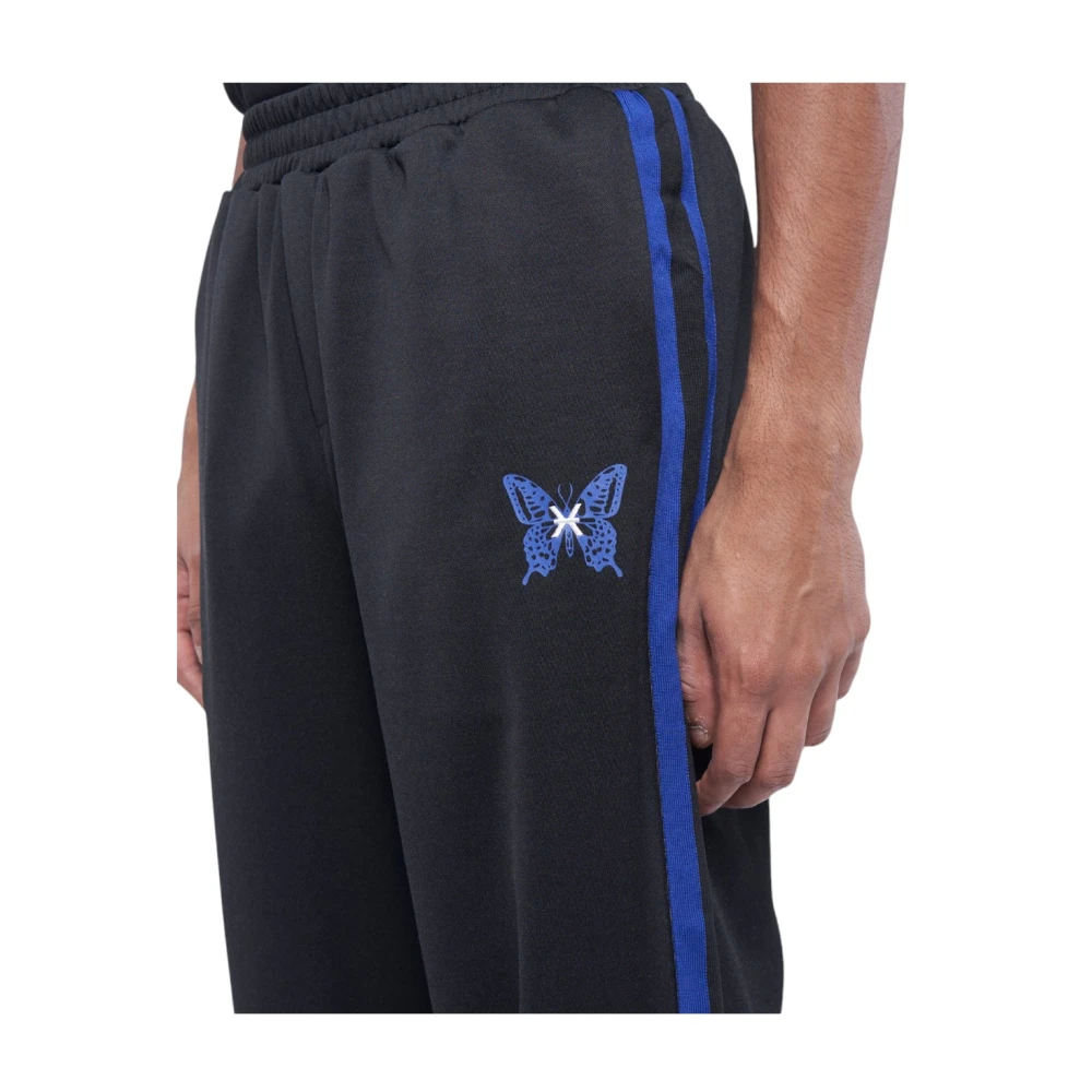 Upgrade je casual stijl met deze zwarte sweatpants van John Richmond voor heren, gemaakt van 50% polyester en 50% katoen. Voorzien van een elastische taille, zwarte en blauwe zijstrepen, voorzakken, wit geborduurd logo op de voorkant, achterzak en geribbelde elastische manchetten