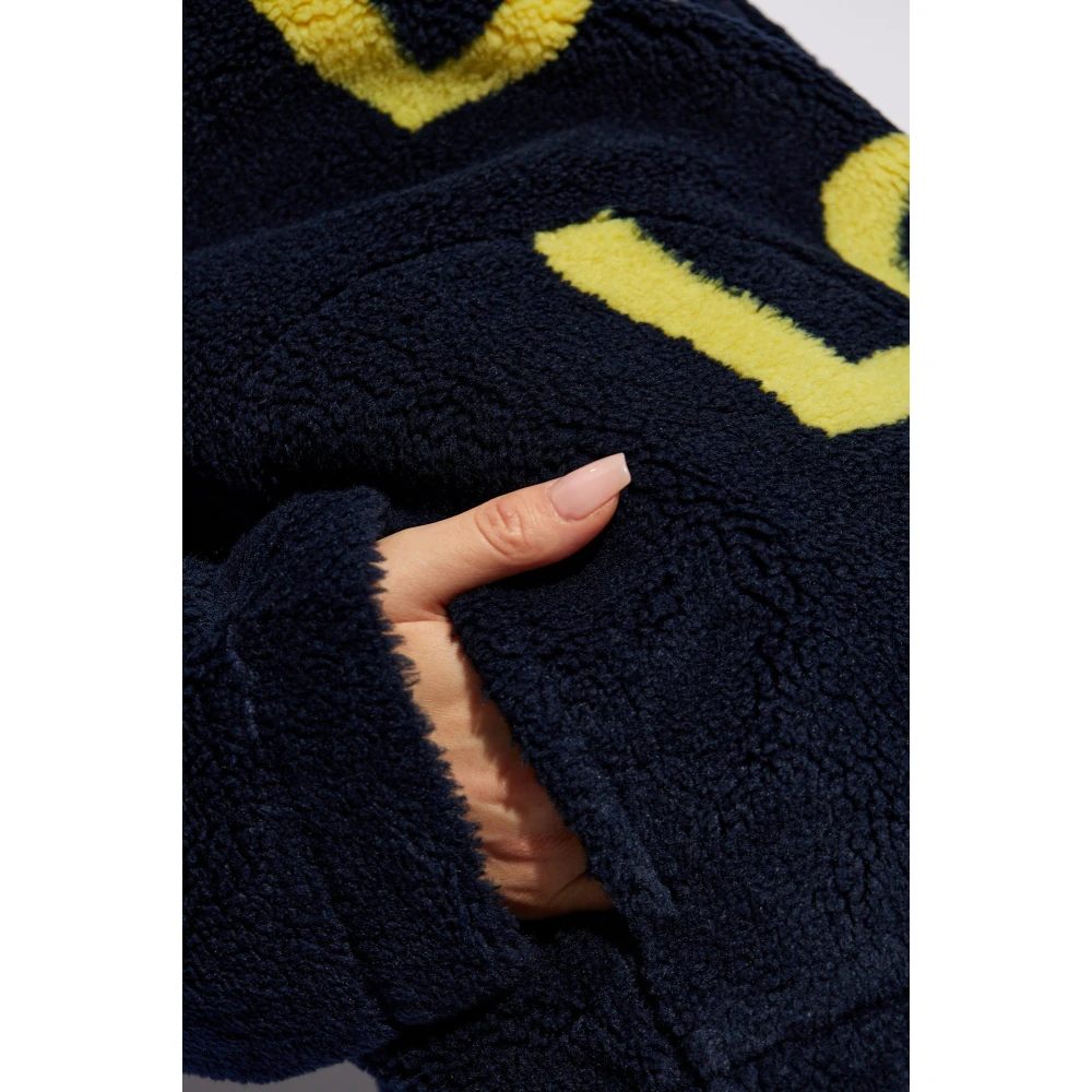 Introductie van de Fleece Sweatshirt MET Print uit de exclusieve collectie van JW Anderson. Deze buitengewone sweatshirt belichaamt de essentie van moderne esthetiek en biedt een unieke interpretatie van de vermenging van mannelijkheid en vrouwelijkheid in de hedendaagse wereld. De marineblauwe kleur biedt een perfecte achtergrond voor de gedurfde, gele
