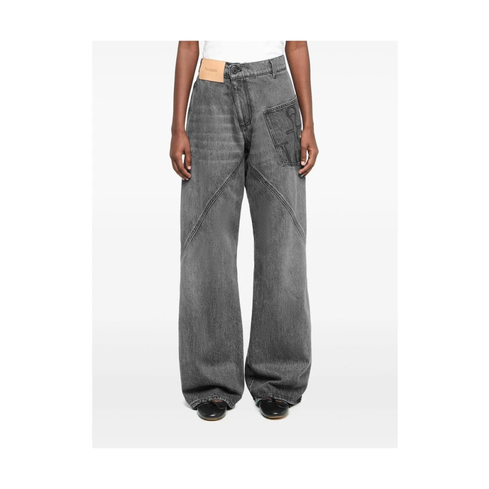 Upgrade je denim look met deze JW Anderson antracietgrijze katoenen straight jeans. Met gedraaide naden, verborgen gulp, hoge taille, riemlussen, applicatielogo, JW-initialen handtekening, ankerlogo voorste opgestikte zak en twee achterzakken. Omarm de rechte pijp trend in stijl.