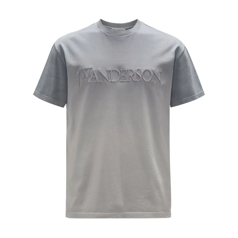 Upgrade je stijl met dit JW Anderson T-shirt voor heren, met een betoverend kleurverloop van grijs naar wit. Versierd met een subtiel geborduurd merklogo is deze 100% katoenen tee een must-have voor je garderobe