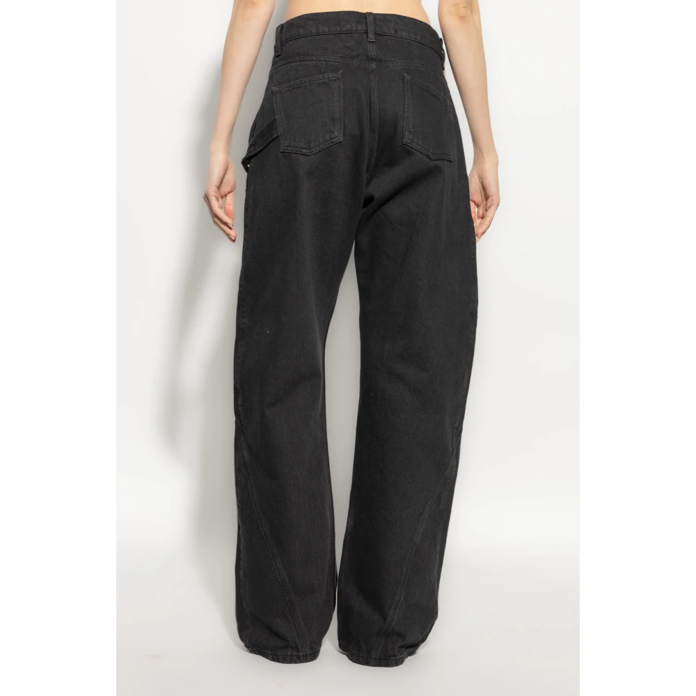 Introductie van Logo Jeans door JW Anderson, die elegantie en modern design combineert. Gemaakt van de hoogste kwaliteit katoen, deze zwarte jeans hebben een klassieke, stijve stofstructuur die hun verfijnde karakter benadrukt. Brede, losse pijpen geven de jeans een avant-gardistische en casual uitstraling, perfect voor eigentijdse styling. Een kenmerkend beige patch met een relif