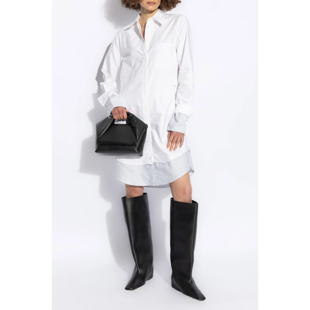 We zijn verheugd om een prachtige overhemdjurk van de bekende ontwerper JW Anderson te introduceren, die de essentie van elegantie en verfijnde stijl belichaamt. Deze witte creatie, vervaardigd van de hoogste kwaliteit katoen, combineert klassiek ontwerp met eigentijdse accenten. Het heeft een klassieke kraag en de aantrekkingskracht wordt versterkt door parelknopen, die een vleugje adel aan de silhouet toevoegen. Draagcomfort wordt gegarandeerd door de rechte, maar toch relaxte pasvorm en korte mouwen met elegante manchetten. Toegevoegde functionaliteit komt van een discreet geplaatste zak op borsthoogte. De jurk maakt indruk met een asymmetrische zoom, langer aan de achterkant dan aan de voorkant, wat een subtiel maar intrigerend effect creert. Het materiaal, met een vleugje elastaan, garandeert niet alleen een foutloos uiterlijk maar ook comfort gedurende de dag. Zowel de precisie van vakmanschap, zichtbaar in elk detail, als de duurzaamheid van het materiaal getuigen van de exclusieve aard van deze jurk. Ongetwijfeld is het een veelzijdig kledingstuk dat zich gemakkelijk aanpast aan verschillende gelegenheden en eindeloze stylingmogelijkheden biedt. Waarom ZOU U DIT Product Moeten Kopen? * Elegantie EN Stijl: Parelknopen en een klassieke kraag verhogen het prestige van elke styling. * Draagcomfort: Een relaxte pasvorm en hoogwaardig materiaal zorgen voor comfort gedurende de dag. * Versatiliteit: Perfect voor elke gelegenheid, van formele vergaderingen tot informele uitstapjes. * Hoogwaardig Vakmanschap: materiaal en oog voor detail weerspiegelen de luxueuze aard van het product. Model`s Afmetingen Hoogte: 176cm Buste: 85cm Taille: 60cm Heupen: 89cm Model draagt maat: 6