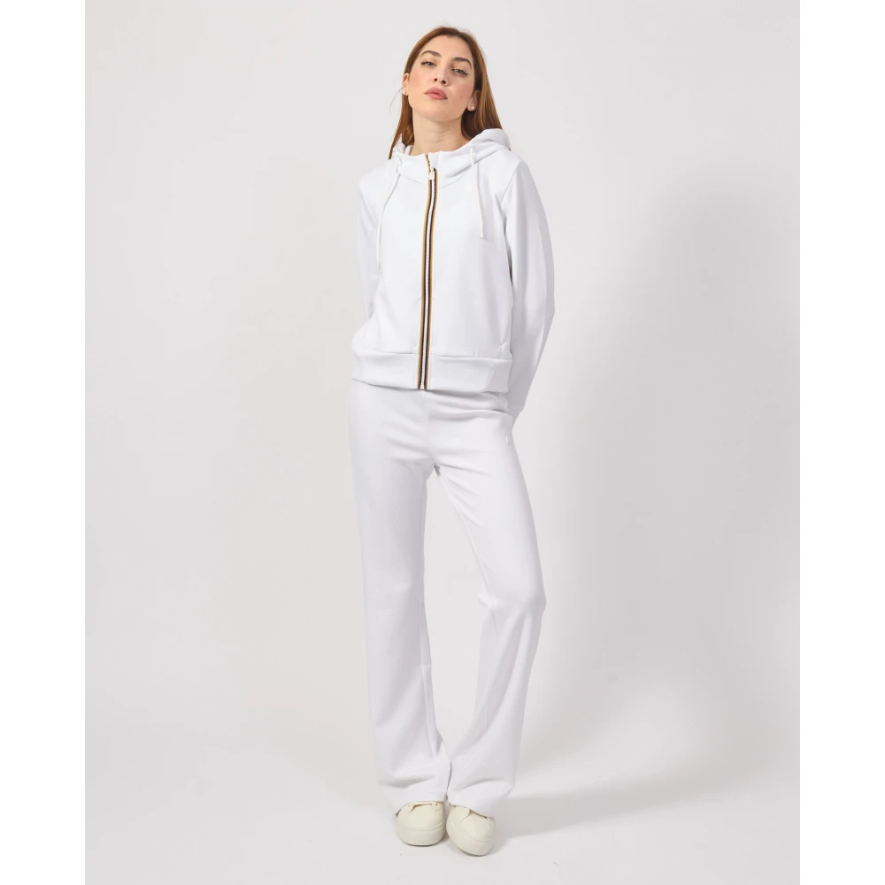 De K-Way Divine cropped sweatshirt voor vrouwen is ontworpen voor vrije tijd en sportieve gelegenheden. Dit model met een normale pasvorm heeft een halve ritssluiting, verstelbare capuchon en diagonale zakken. Gemaakt van glad en zacht technisch interlock materiaal met strategische sneden voor een onberispelijke pasvorm, comfort en bewegingsvrijheid tijdens activiteiten. Creer een schone en essentile athleisure-outfit met dit stuk. Details: Stretch matte interlock stof, Diagonale zakken, Geribbelde manchetten en zoom, Normale pasvorm, Ritssluiting, Wit siliconen logo. Het model draagt maat S en is 1, 70 m lang.