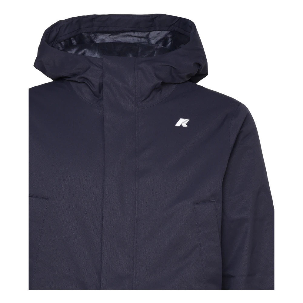 Blijf stijlvol en beschermd tegen de elementen met deze K-Way marineblauwe trenchcoat voor heren. Met ritssluiting, gentegreerde capuchon en grote zakken is deze lange nylon parka perfect voor dagelijks gebruik