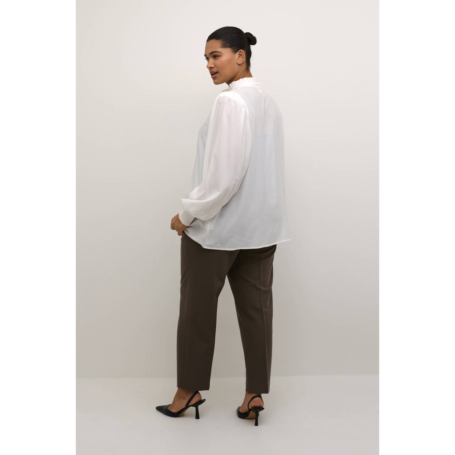 Upgrade je garderobe met deze stijlvolle blouse van Kaffe Curve. Met lange pofmouwen, aansluitende manchetten, hoge hals en delicate ruchedetails is deze blouse een must-have voor de modebewuste vrouw. Let op: Dit item bevindt zich in een extern magazijn. De levering kan met 2-3 dagen worden verlengd als het item momenteel niet in onze winkel is. Pasvorm: Normaal Model: Kcdorina Blouse Bluser 10582643 Chalk Materiaal: 58% polyester, 42% viscose Kleur: Chalk.