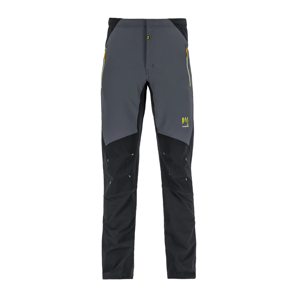 zwart drukknoopsluiting aan de voorkant twee zakken met ritssluiting aan de zijkant riemlussen toelopende pijpen
