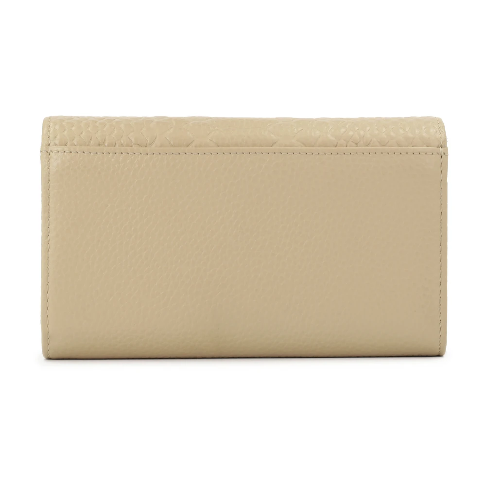 De beige portemonnee is een elegant en verfijnd accessoire dat subtiel design combineert met unieke details. Gemaakt van hoogwaardig natuurlijk leer, valt hij op door zijn zachte, natuurlijke tint, waardoor het een ideale keuze is voor degenen die klassiekers en veelzijdigheid waarderen. De klep van de portemonnee is versierd met een relif exotisch patroon, wat een uniek karakter toevoegt en de aandacht trekt, en een elegante gouden logo. De portemonnee behoudt een compact formaat en biedt tegelijkertijd praktische functionaliteit, met ruimte voor kaarten, biljetten en munten, waardoor het zowel esthetisch aantrekkelijk als handig is voor dagelijks gebruik.