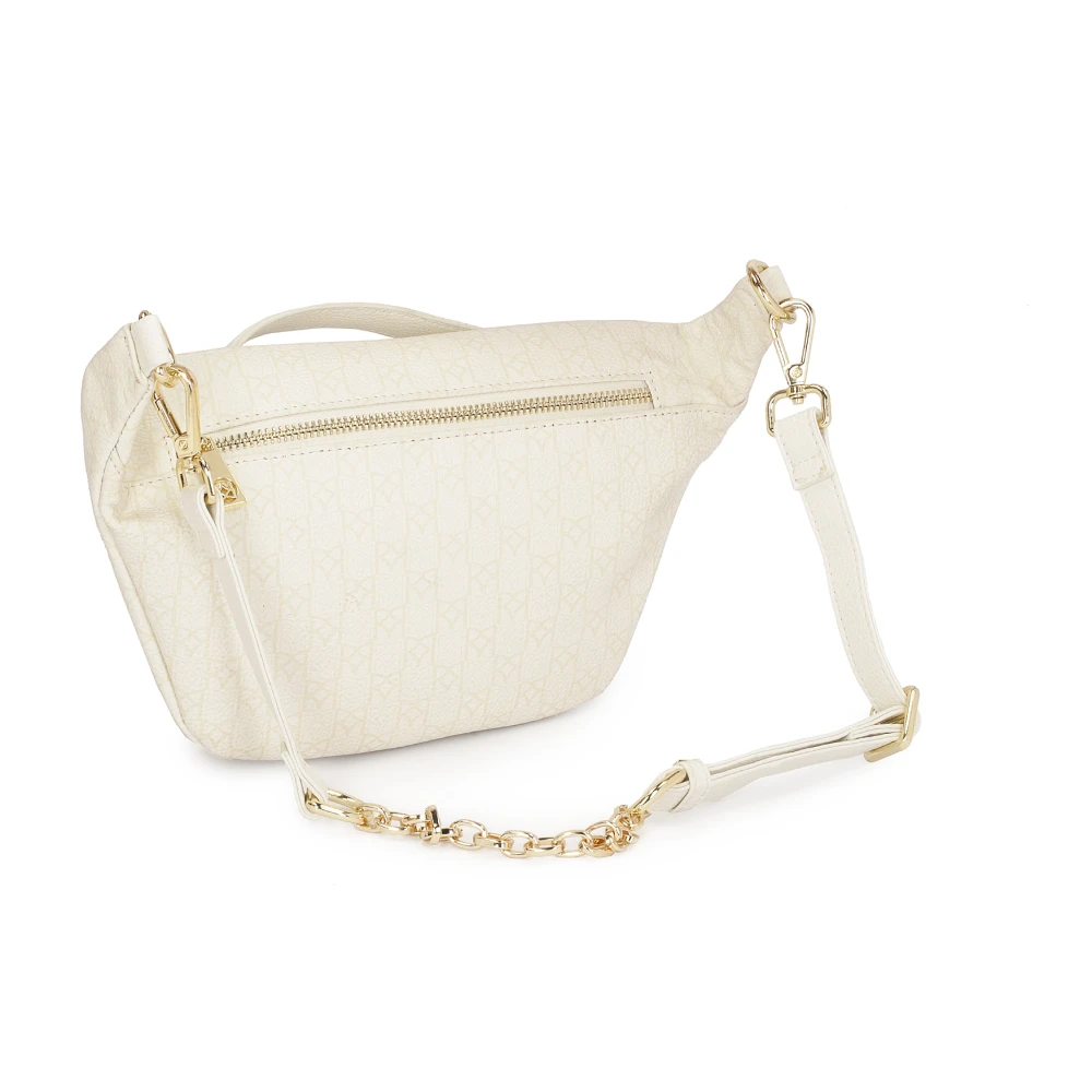 Een heuptas, of een zakje dat om de taille of heupen wordt vastgemaakt, is een interessant alternatief voor de klassieke handtas. Dit praktische accessoire biedt ruimte voor alle meest noodzakelijke snuisterijen en, nog belangrijker, biedt volledige bewegingsvrijheid. Het gepresenteerde model is gemaakt van hoogwaardig korrelleer in de kleur gebroken wit, versierd met een uniek KAZAR-merkpatroon. De ketting aan de afneembare band ziet er elegant uit. Het onderscheidende element van deze heuptas is het leren handvat, waardoor het in de hand gedragen kan worden. Productdetails: De heuptas heeft 1 compartiment dat gesloten is met een rits. Binnenin bevindt zich 1 open zak en 1 met een rits. Aan de achterkant van de heuptas bevindt zich 1 met een rits afsluitbare zak. De leren kettingband is afneembaar en verstelbaar.