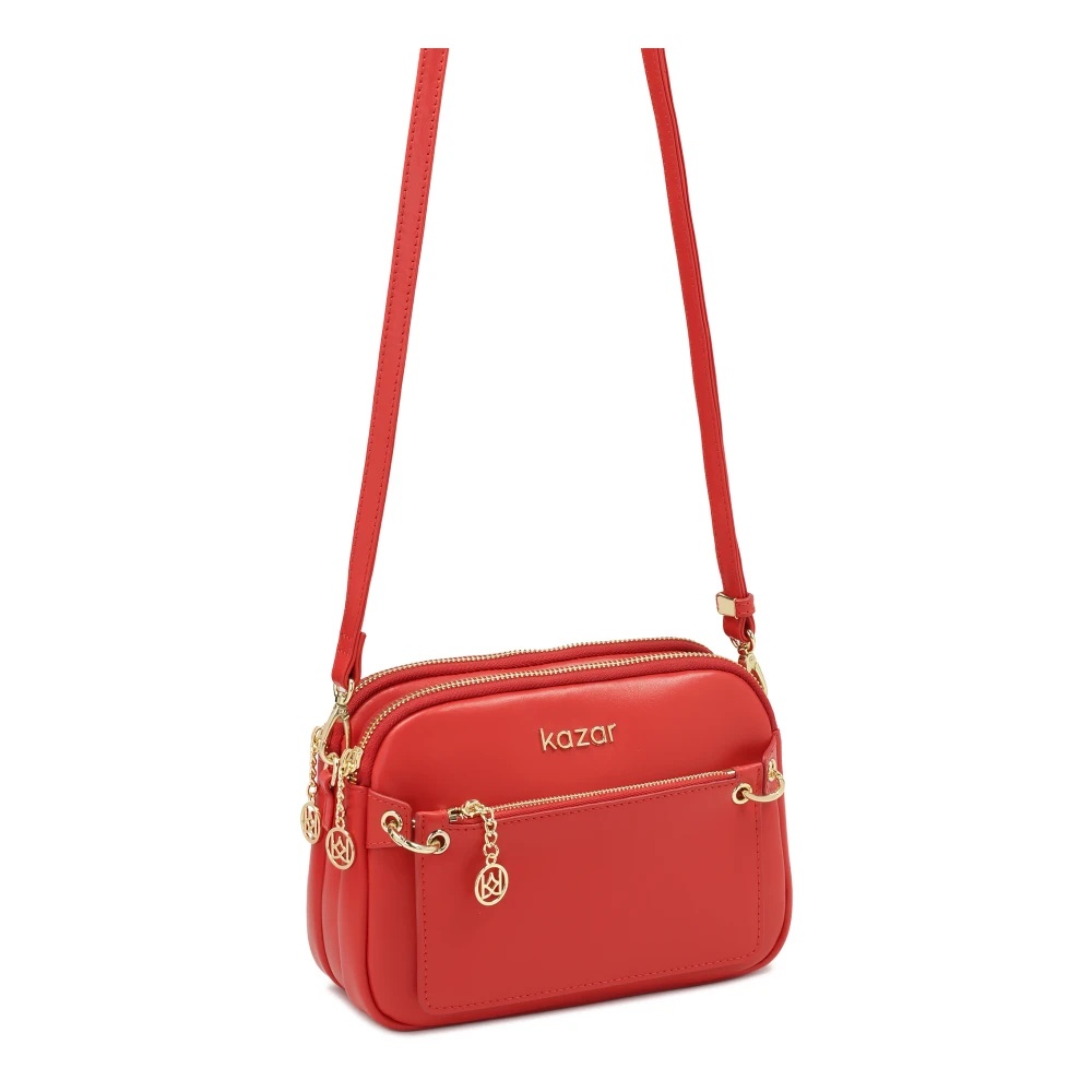 Rode handtas gemaakt van hoogwaardig natuurlijk leer is een opvallend en elegant accessoire dat de aandacht trekt. Het functionele interieur bestaat uit drie aparte compartimenten, wat zorgt voor uitstekende organisatie van de ruimte. De handtas is uitgerust met een afneembare, verstelbare riem, zodat je hem zowel over de schouder als over het lichaam kunt dragen, de lengte aanpassend aan je behoeften. Aan de voorkant van de tas zit een afneembare zak, die een moderne touch en praktisch nut toevoegt. Het geheel wordt aangevuld met een gouden logo aan de voorkant en stijlvolle gouden metalen details, die het luxe ontwerp benadrukken en de handtas een elegante afwerking geven. Productdetails: De handtas heeft een afneembare, verstelbare riem waarmee hij over de schouder gedragen kan worden. De handtas heeft 3 afsluitbare compartimenten - 2 met ritsen en 1 met een magnetische sluiting. Binnenin bevinden zich 2 open zakken en 1 met rits. Aan de voorkant van de tas is een zak bevestigd.