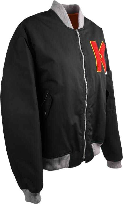 Kenzo Varsity Zwarte Bomberjack. Kenmerken: -Hoge kraag -Geborduurd Kenzo Paris logo op de achterkant -Centrale ritssluiting -Elastische manchetten en tailleband