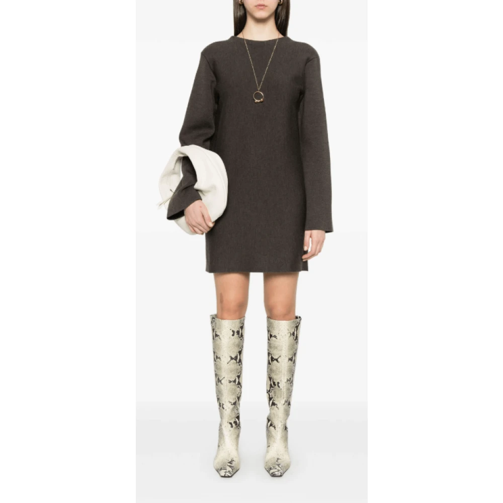 Upgrade je garderobe met deze Khaite gebreide jurk in cederbruin. Met een ronde hals, lange mouwen en een stijlvolle V-rug. Gemaakt van 95% wol en 5% polyamide.