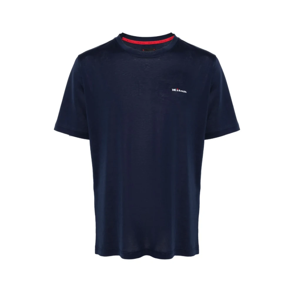 marineblauw opgestikte borstzak ronde hals korte mouwen