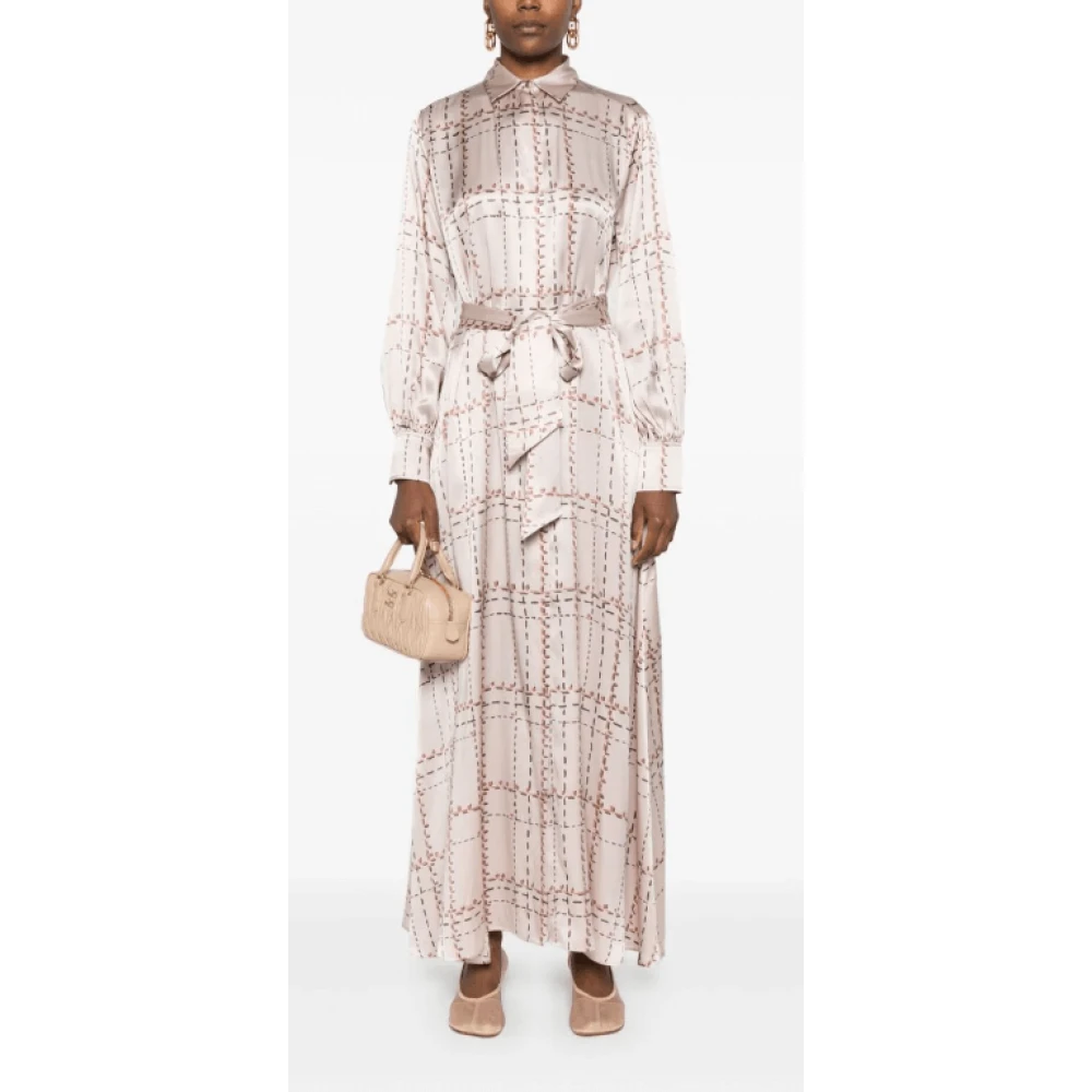 Verrijk je garderobe met deze mauve zijden maxi-jurk van Kiton. Voorzien van een satijnen afwerking, verborgen knoopsluiting aan de voorkant, klassieke kraag, lange mouwen met knoopmanchetten, afneembare tailleband en een rechte zoom. Deze lange jurk is geschikt voor elke gelegenheid. Model is 1, 8 m lang en draagt maat 40 (It).