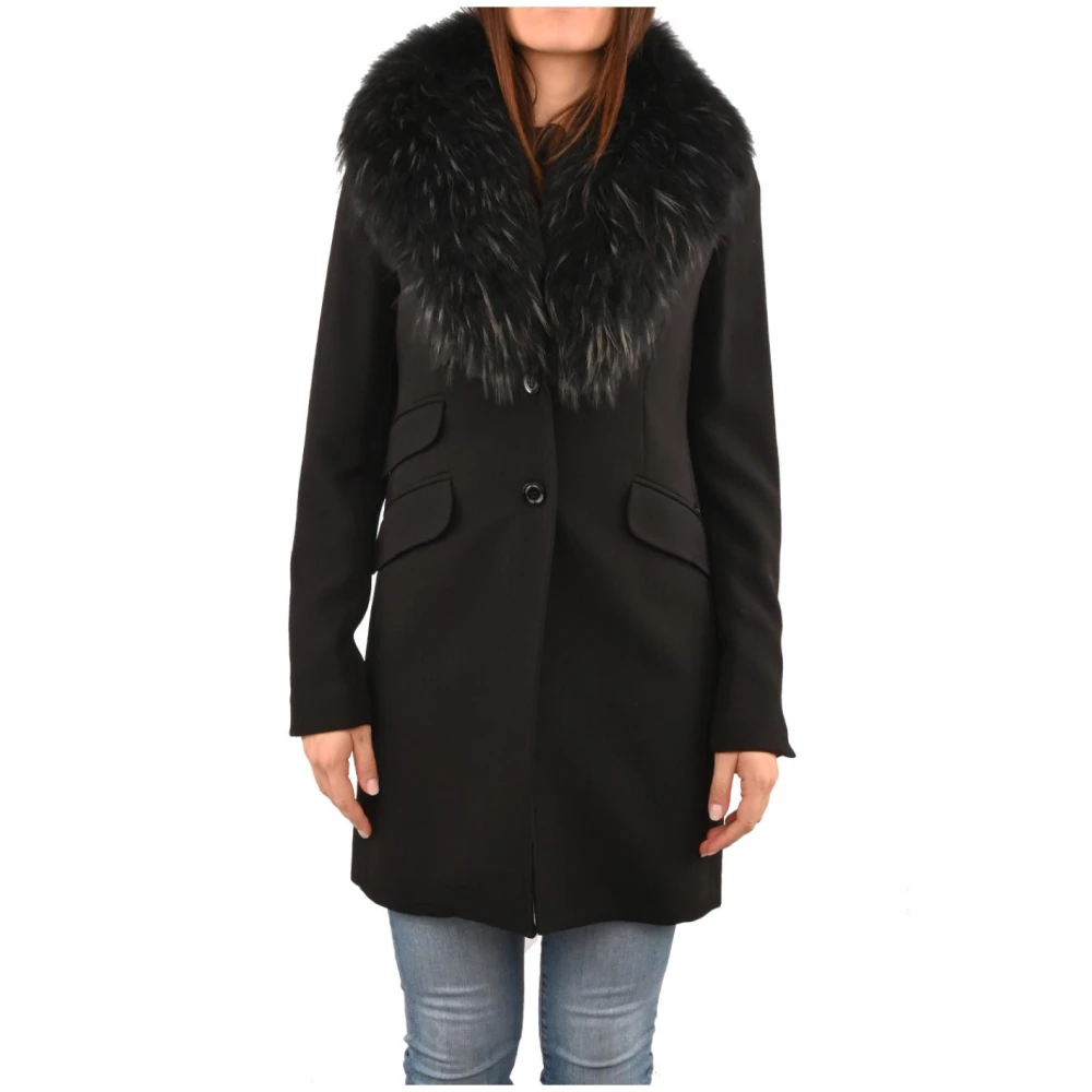 Upgrade je winterstijl met deze enkelrijige jas van Kocca. Gemaakt van wol, deze damesjas heeft schuine zakken en een afneembare bontkraag