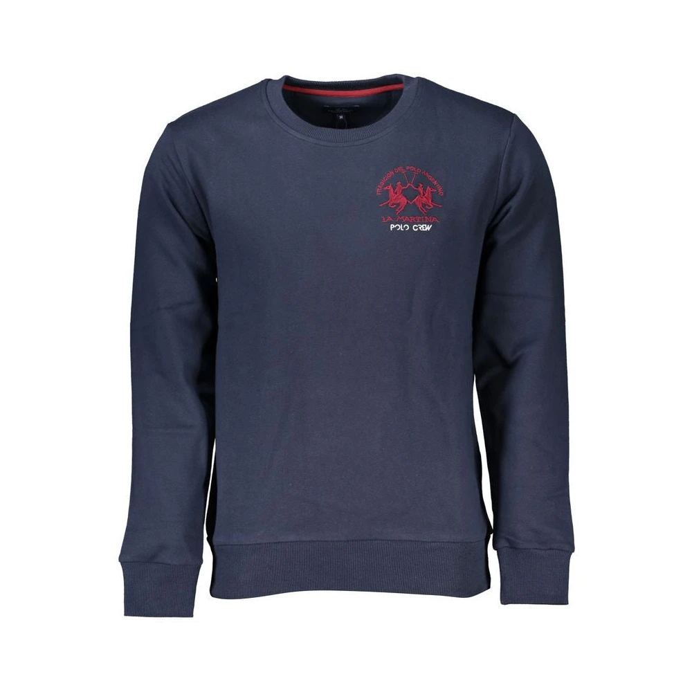 Blijf warm en stijlvol in deze La Martina blauwe katoenen sweatshirt. Met een ronde hals, lange mouwen en een regular fit, is deze sweatshirt perfect voor casual wear. Het geborduurde logo design voegt een vleugje verfijning toe, waardoor het ideaal is voor koudere dagen. Combineer het met verschillende outfits voor een veelzijdige look. Een must-have voor mannen