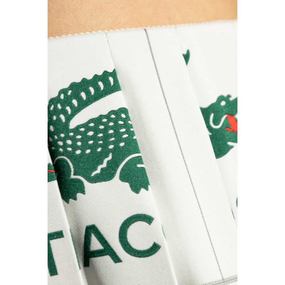 Maak kennis met een uniek kledingstuk uit de Lacoste X LEMARI-collectie - een rok die klassieke stijl harmonieus combineert met een moderne touch. Deze halflange, licht geplooide rok weet te boeien met zijn structuur en elegantie. De overheersende witte kleur, verweven met het groene Lacoste-krokodillenlogo en de inscripties