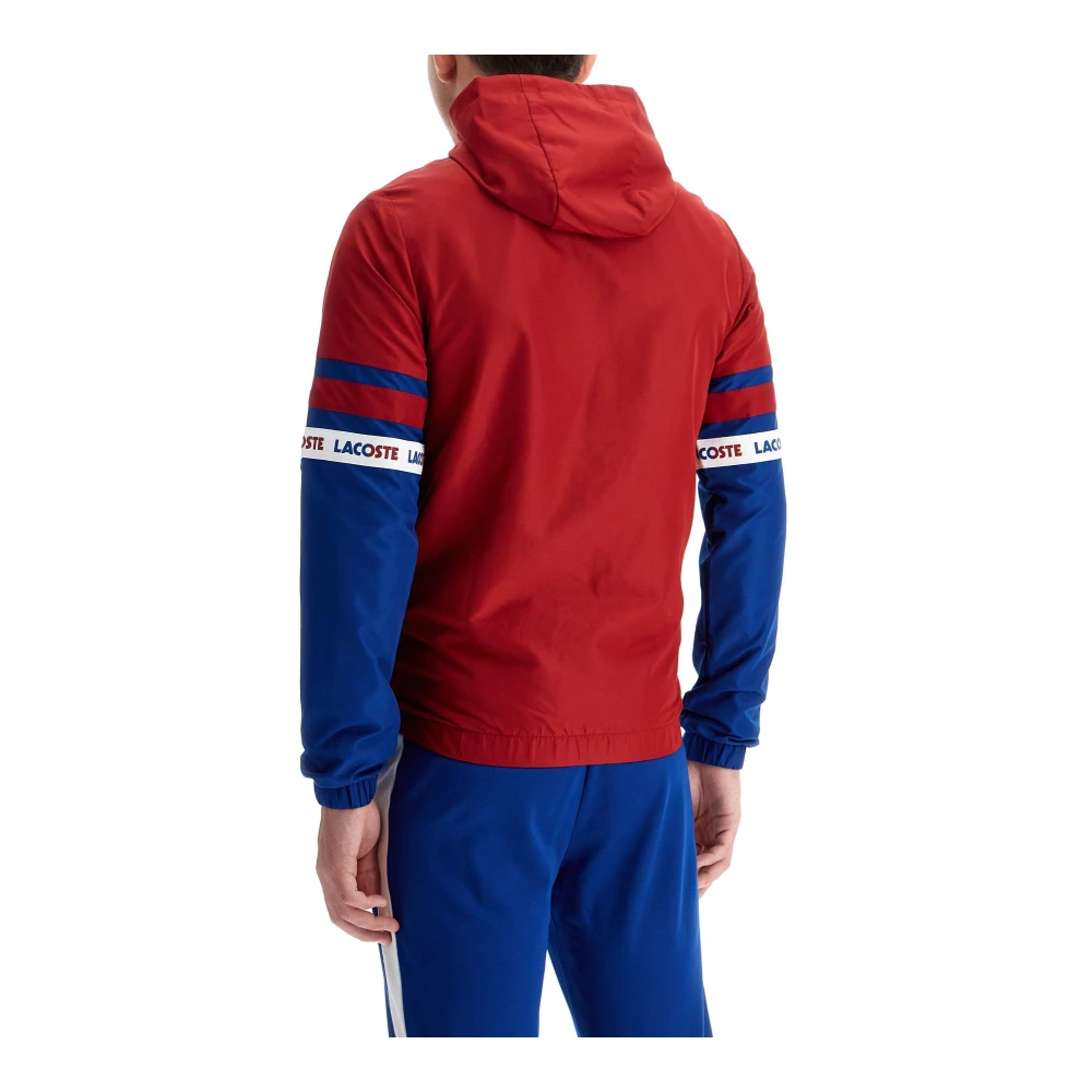 Blijf stijlvol en comfortabel met deze Lacoste sportjas voor heren. Gemaakt van en waterbestendig technisch diamantpatroon tafzijde, heeft deze jas contrasterende mouwen met het Sportsuit-logo, een krokodillenpatch op de borst, capuchon, ritssluiting, zijzakken met ritsen en elastische manchetten en zoom. De mesh-voering en reguliere pasvorm zorgen voor maximaal comfort. Model is 182 cm lang en draagt maat 2/X.