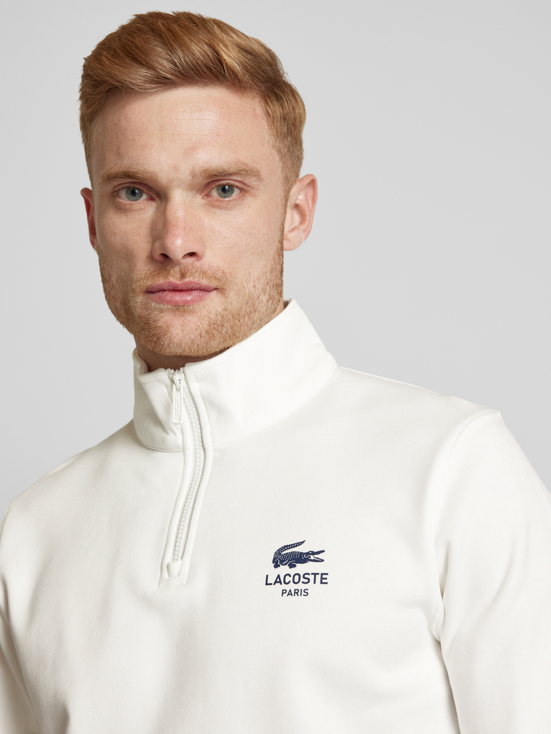 Sweatshirt voor heren van LACOSTE. Katoenmix met stretchgehalte. Regular fit. Opstaande kraag. Korte ritssluiting. Labelprint. Ribboorden. Ruglengte bij maat M: 69 cm. Mouwlengte bij maat M: 66 cm