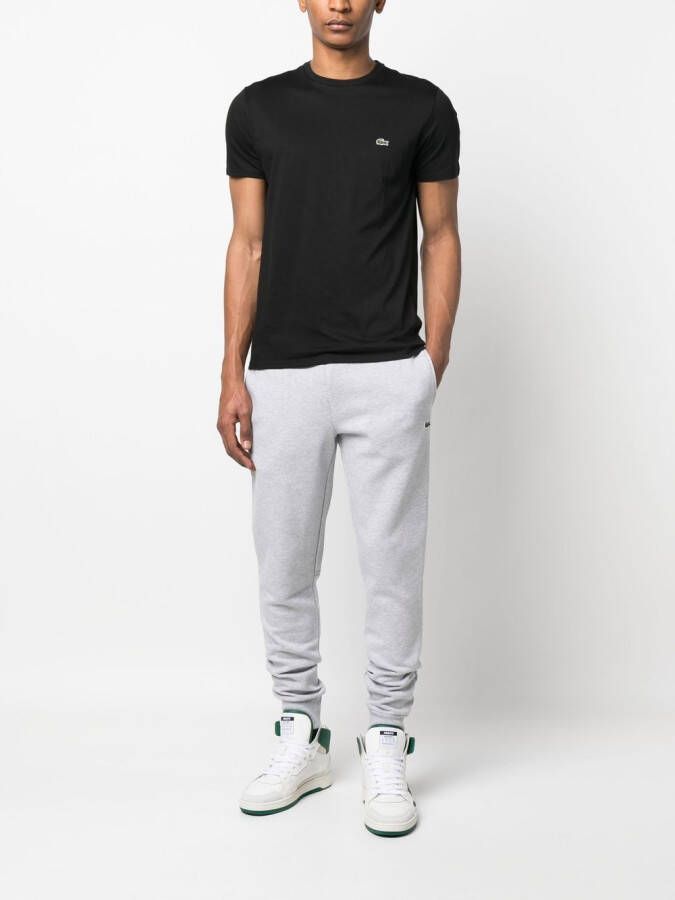 Grijs, katoenmix, logopatches aan de voorkant, elastische tailleband, twee steekzijzakken en elastische enkels.