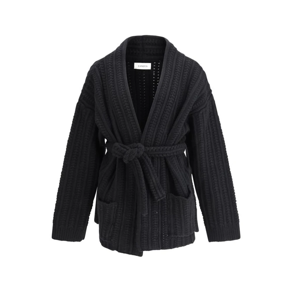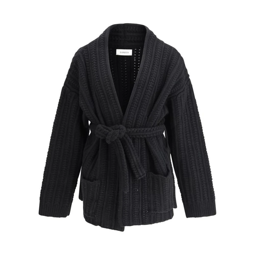 Upgrade je stijl met deze Laneus cardigan, een hybride tussen een cardigan en een ochtendjas. Met een verlaagde schouder en twee zakken aan de voorkant, is dit knooploze ontwerp met een taille naad gemaakt van naaldgeponste wol. Gemaakt in Itali