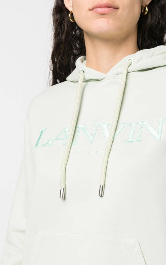 Saliegroen, katoen, geborduurd logo, capuchon met trekkoordsluiting, opgestikte zak aan de voorkant en lange mouwen.