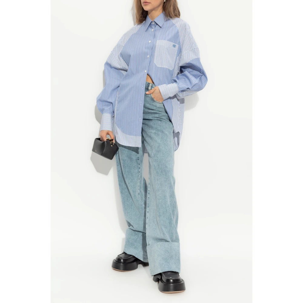 Ontdek Jeans MET Opgestroopte Zoom van het gerenommeerde modehuis Lanvin, die modern design combineren met klassiek materiaal. Gemaakt van de hoogste kwaliteit katoen denim, trekken deze jeans de aandacht met hun eenvoudige boyfriend snit en wijde pijpen die stijlvol kunnen worden opgerold aan de onderkant. Hun lichtblauwe tint en subtiele slijtage voegen een casual karakter toe, waardoor ze een perfecte keuze zijn voor elke gelegenheid. Standaard zakken aan de voorkant en achterkant en kenmerkende stiksels op de achterzak benadrukken hun klassieke vorm. Een leren patch met het logo van de ontwerper en een knoop- en ritssluiting maken de look compleet. Waarom ZOU U DIT Product Kopen? * Exclusiviteit en prestige van het merk Lanvin. * Universele pasvorm, perfect voor elke styling. * Hoogwaardig, materiaal. * Stijlvolle details en afwerkingen. Model's Afmetingen Hoogte: 177 cm Buste: 83 cm Taille: 61 cm Heupen: 89 cm Model draagt maat: 36