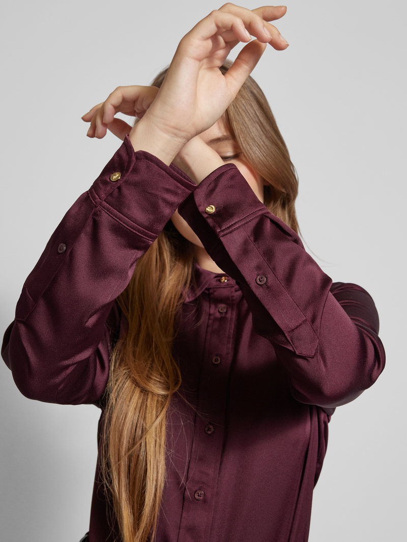 Overhemdblouse van Lauren Ralph Lauren voor dames. Regular fit. Deelnaad. Model 'JAMELKO'. Overhemdkraag. Doorknoopsluiting. Ruglengte bij maat S: 72 cm. Mouwlengte bij maat S: 60 cm
