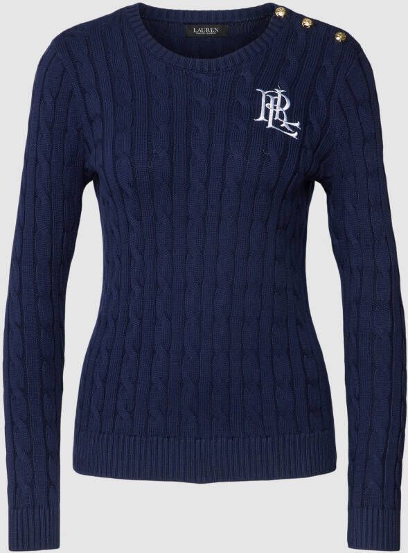 Upgrade je garderobe met deze Lauren Ralph Lauren damesblauwe ronde-hals trui. Met een unieke draai aan het klassieke kabelbreisel met decoratieve knopen op de schouder