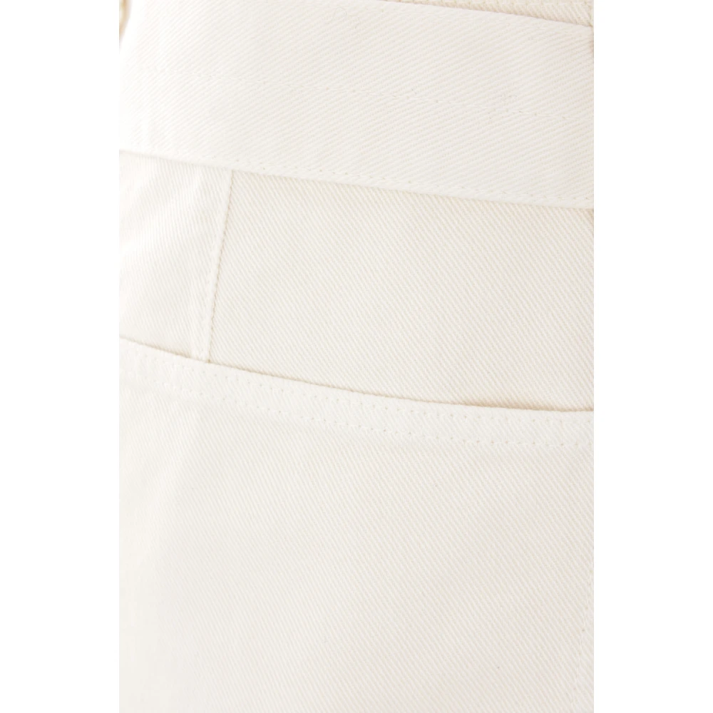 Upgrade je garderobe met deze losvallende Lemaire broek in ivoorkleurig katoen denim. Met gebogen zijnaden, voor sluiting met haak/knoop/rits, riemlussen met afneembare riem en meerdere zakken. Internationale Standaard Maat; de aangegeven maat is degene op het productlabel. Hoge taille / Zachte pasvorm onderkant 23 cm Valt normaal qua maat.