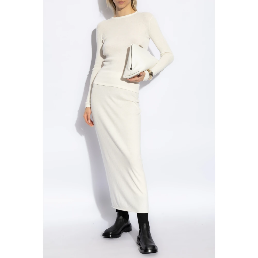 Dit shirt met lange mouwen valt op door zijn aansluitende pasvorm en fijne ribgebreide stof, die zorgt voor een comfortabele pasvorm. De klassieke ronde halslijn benadrukt de tijdloze uitstraling. Gemaakt van zacht kasjmier, zorgt het voor optimaal comfort en is veelzijdig te combineren - een must-have voor stijlvolle alledaagse looks.