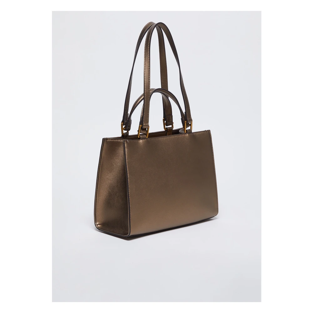 Upgrade je stijl met deze Liu Jo handtas in bronskleurig faux leer met een metallic afwerking. Voorzien van twee platte handvatten, twee platte schouderbanden, een reliflogo aan de voorkant en goudkleurige hardware. Het hoofdcompartiment bevat een interne ritszak en insteekzak, met logo-print voering. Compleet met een bovenritssluiting en een beschermende stofzak. Afmetingen: Diepte - 14, 0 cm, Handvat - 11, 0 cm, Hoogte - 21, 0 cm, Riem - 56, 0 cm, Breedte - 28, 0 cm.