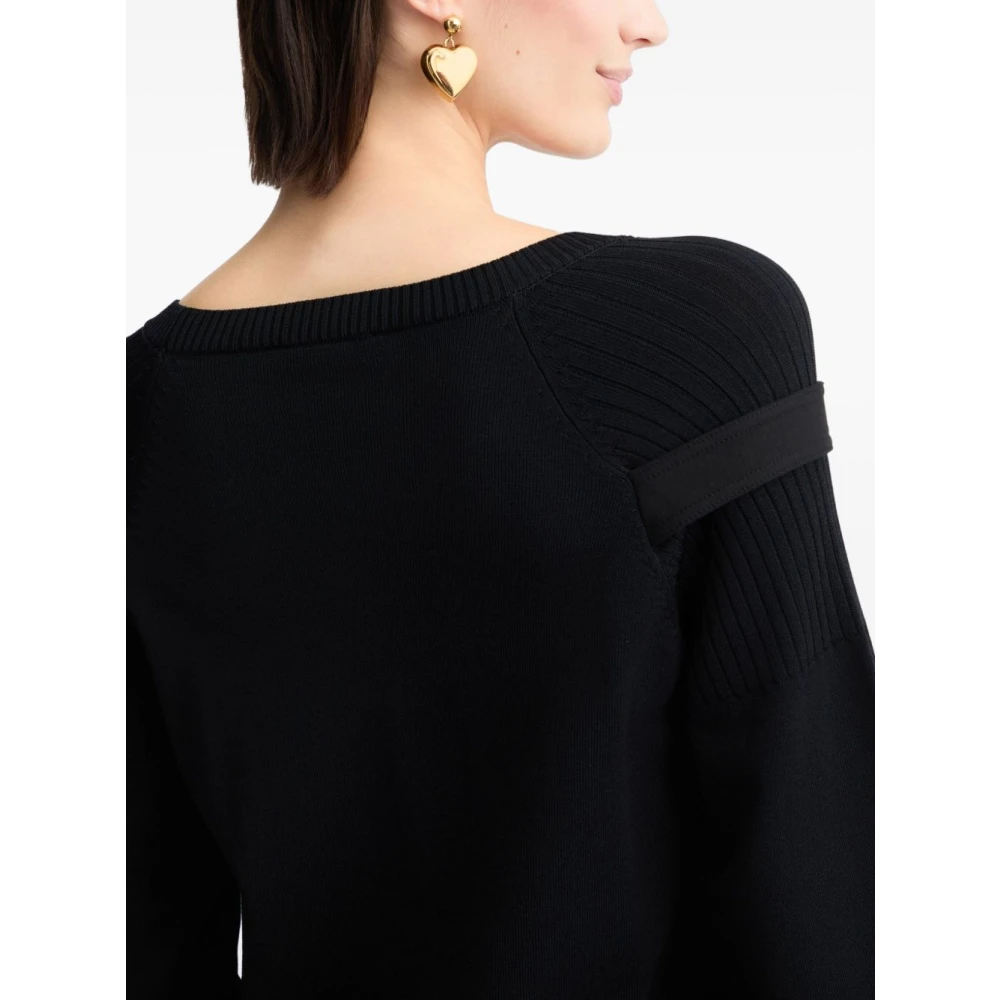 Upgrade je stijl met deze Liu Jo zwarte ronde-hals knitwear met logo lettering, logo-gegraveerde knopen, ronde hals en lange raglanmouwen, perfect voor de modebewuste vrouw.