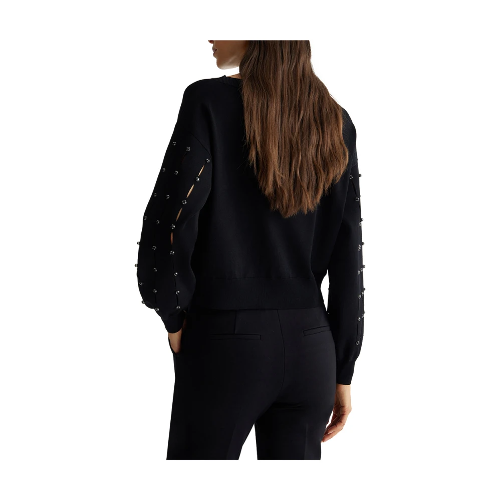 Upgrade je garderobe met deze luxueuze Liu Jo zwarte trui. Gemaakt van een mix van 83% viscose en 17% elasthaan, is deze ronde-hals knitwear perfect voor de moderne vrouw