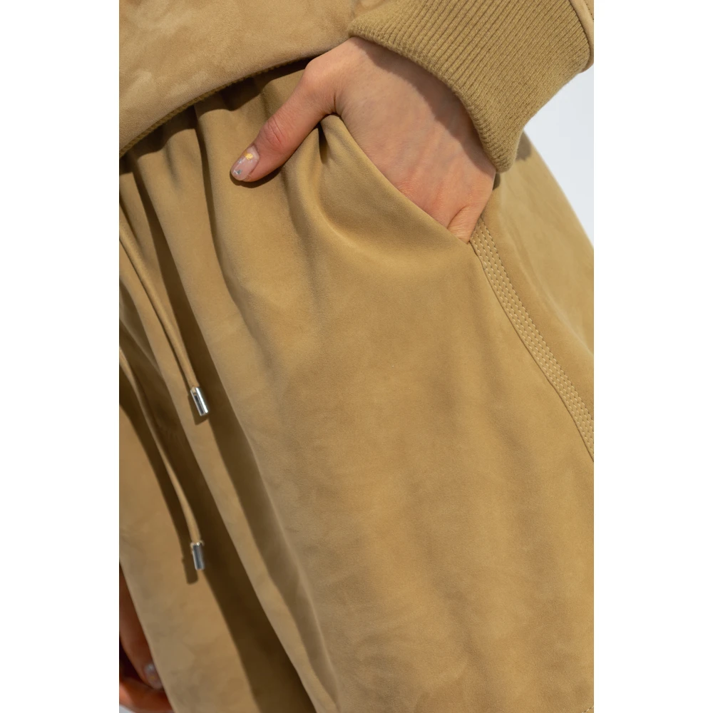Beige shorts van Loewe. Gemaakt van leer, dit paar heeft een elastische tailleband en drie steekzakken. Modelmaten Hoogte: 176 cm Buste: 85 cm Taille: 60 cm Heupen: 89 cm Model draagt maat: 38