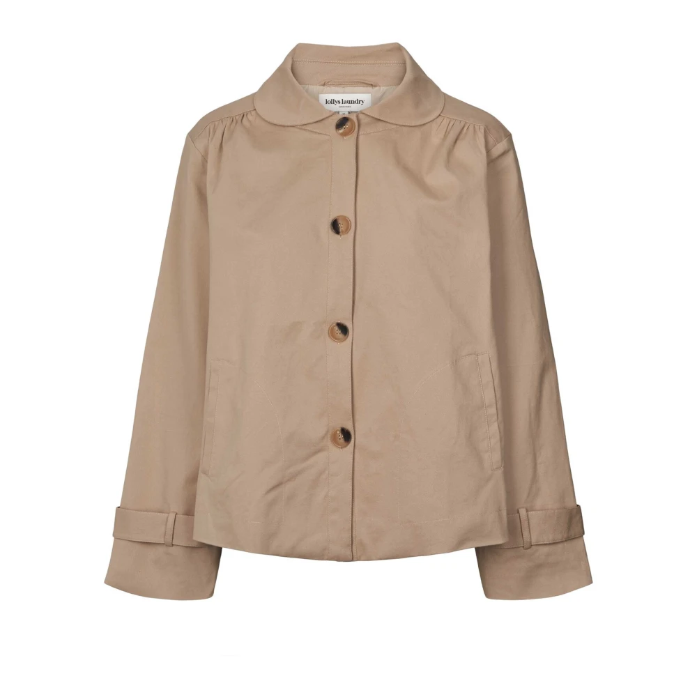 Deze jas van Lollys Laundry in beige is een stijlvolle trenchcoat voor dames. De jas heeft een klassieke kraag en lange mouwen. Met een knoopsluiting en handige zakken aan de voorkant is deze jas perfect voor de lente