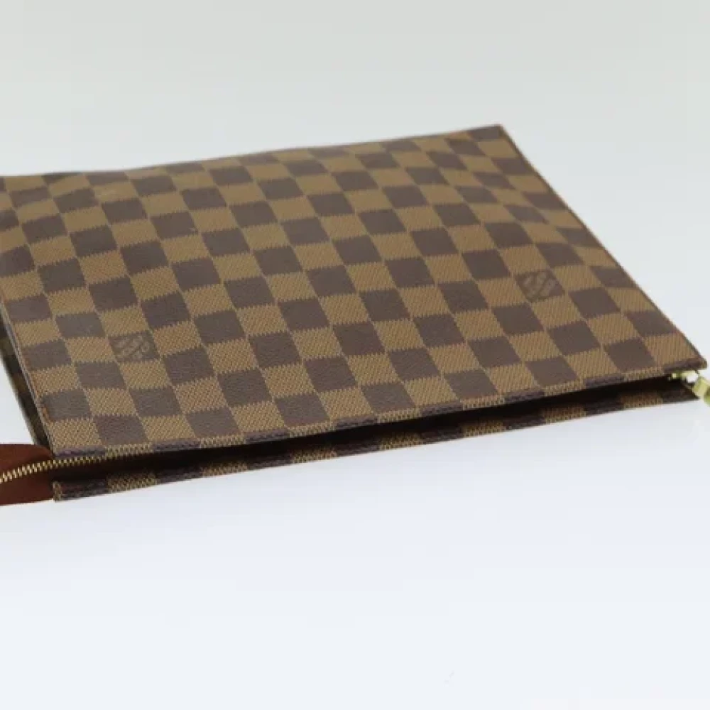 Merk: Louis Vuitton Kleur: Damie Ebene Materiaal: Damier Ebene Canvas Afmetingen (cm): B26cm x H20cm x D5cm (ongeveer) Afmetingen (inch): B10.2 x H7.9 x D2.0 inch (ongeveer) Stijl: Pouch Accessoire: Er is geen doos en stofzak bijgevoegd. We sturen alleen het item dat op de foto staat. Productnummer: N47543 Serienummer: Th 1906 Gemaakt in: Frankrijk Rang: B Sku: 85337 Staat: Buitenkant(Oppervlak): vormverlies, lichte wrijving (Leer): zonnebrand, vlek, lichte wrijving (Metalen fittingen): lichte krassen Binnenkant: wrijving, vlek, plakkerig, lichte schilfering Zak: - Hoeken: lichte wrijving Geur: Er is een bewaargeur. Overige opmerkingen: - Staat: Goed, maar gebruikt. Een goed maar gebruikt item is gedragen en mogelijk gewassen, maar zal in goede staat verkeren en goed zijn verzorgd. Het item zal zichtbare slijtage vertonen, maar de defecten zullen minimaal zijn. Deze moeten worden vermeld en zichtbaar zijn op foto's.