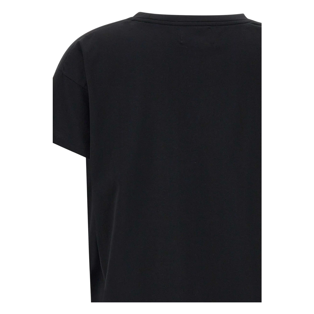 Upgrade je casual look met Loulou Studio's dames 'Basiluzzo' zwarte t-shirt. Gemaakt van Supima-katoen, deze ultra zachte en resistente t-shirt heeft een vierkante pasvorm, ronde hals, korte mouwen, licht cropped zoom, zijsplitten en een schelplogo geborduurd op de zoom. Geniet van het comfort en de stijl van deze regular fit tee.