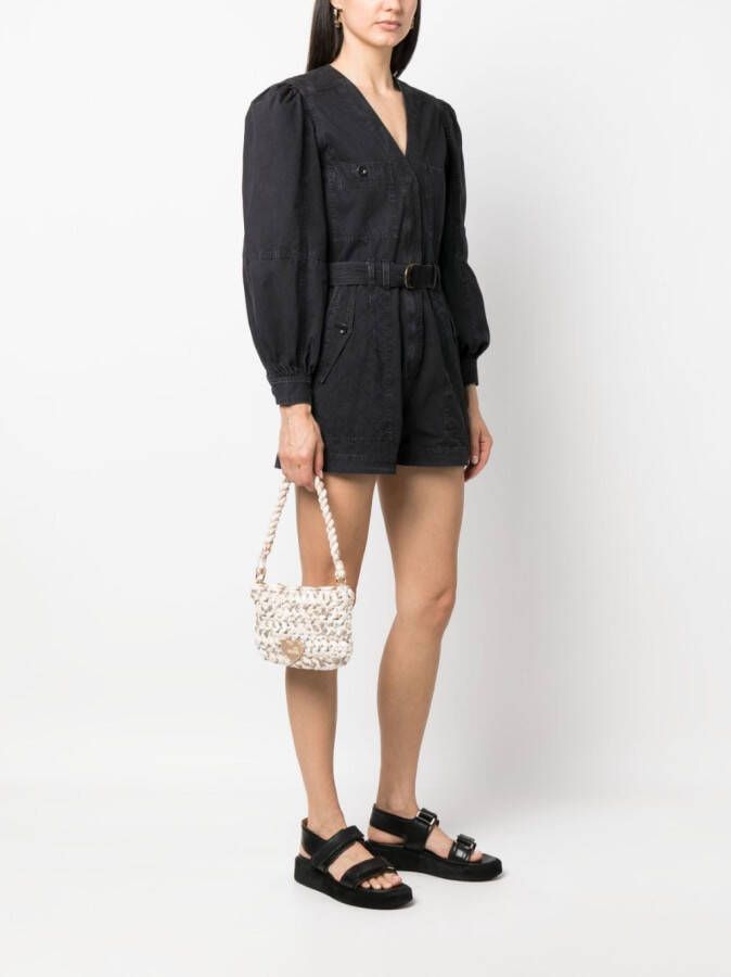 Ecru, gehaakt, logo plakkaat, goudkleurig materiaal, ritssluiting aan de bovenzijde, een enkel schouderbandje, hoofdvak en logopatch aan de binnenkant.