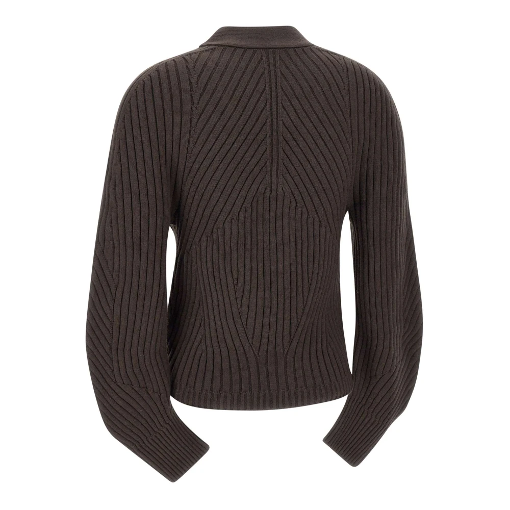 Upgrade je stijl met deze LOW Classic cardigan van een wolmix in donkerbruin. Met een verticaal geribbeld weefsel met een asymmetrisch spel van sneden, lange mouwen, V-hals, knoopsluiting, raglanmouwen en een relaxte pasvorm - perfect voor de moderne vrouw.