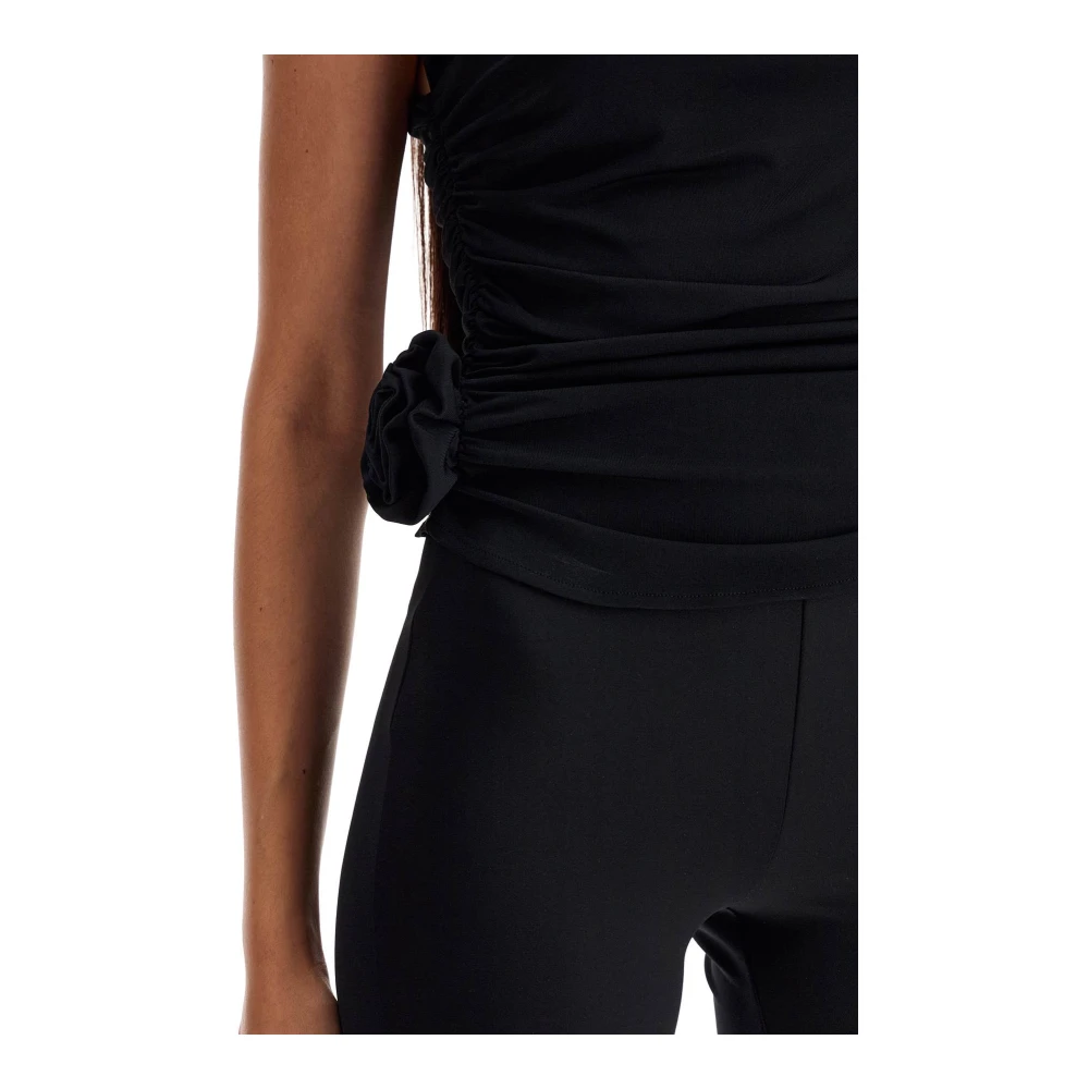 Upgrade je stijl met deze prachtige Magda Butrym one-shoulder top versierd met stoffen bloemapplicaties. Gemaakt van viscose jersey, het toont gerimpelde constructie langs de zijkanten en een aansluitende silhouet. Perfect voor de moderne vrouw. Modelhoogte: 177 cm, maat FR 36.