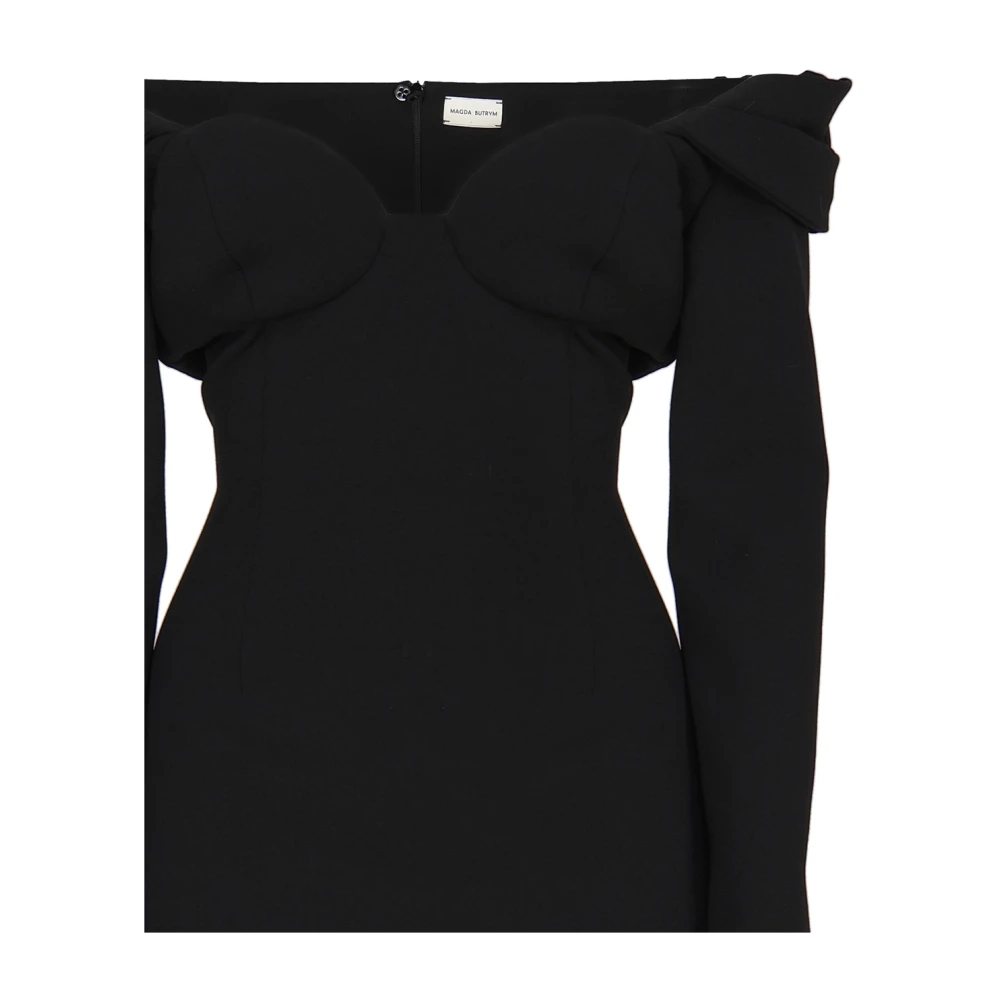 Verrijk je stijl met deze prachtige Magda Butrym korte schede jurk. Ontworpen in een bustier-stijl, heeft deze jurk een off-shoulder halslijn en lange mouwen, wat een vleugje elegantie aan je look toevoegt. Gemaakt in Polen, is deze jurk gemaakt van een mix van zwart 96% zuivere wol en 4% elastaan, wat zorgt voor zowel comfort als stijl. Perfect voor elke gelegenheid, is deze jurk een must-have voor de modebewuste vrouw.
