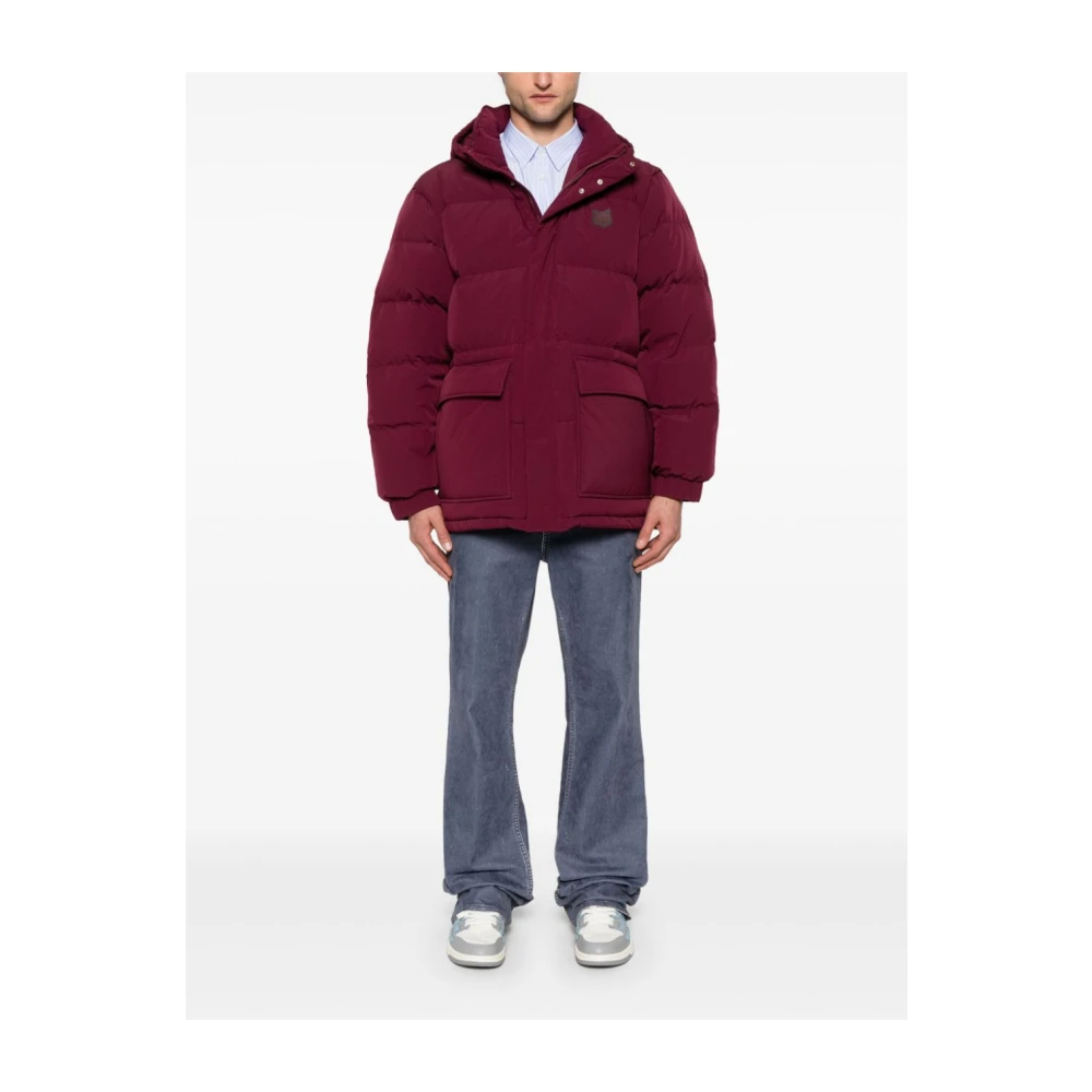 Blijf warm en stijlvol deze winter met Maison KITSUNE's wijnrode gewatteerde donsjack met elastische boorden en een voorsluiting met drukknopen en rits.