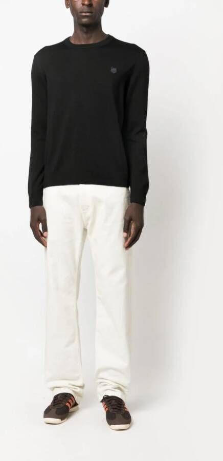 Zwart, wol, logopatch, jersey gebreid, ronde hals, lange mouwen en rechte zoom.