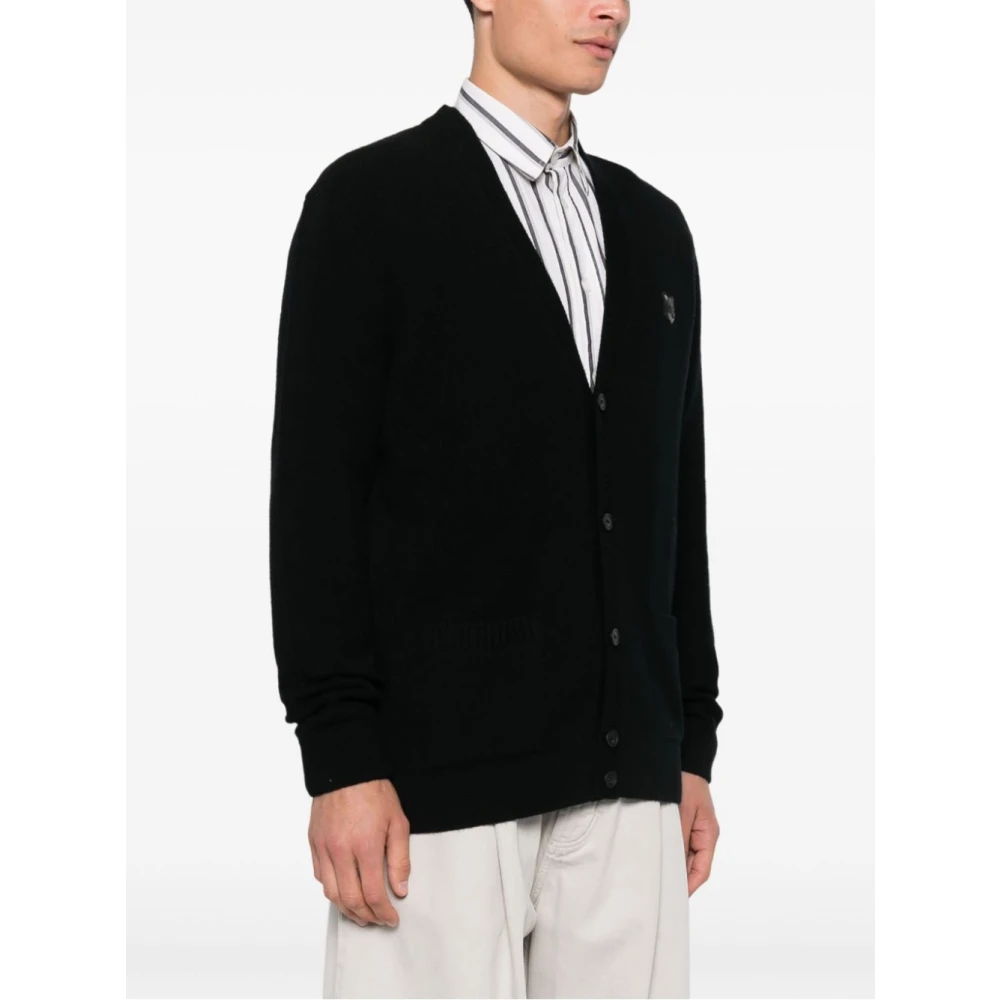 Upgrade je garderobe met de Bold Fox Head Patch Regular Cardigan van Maison Kitsun. Gemaakt van luxueuze 100% wol, combineert dit stijlvolle zwarte gebreide kledingstuk comfort en verfijning, waardoor het een must-have is voor elke modieuze man.