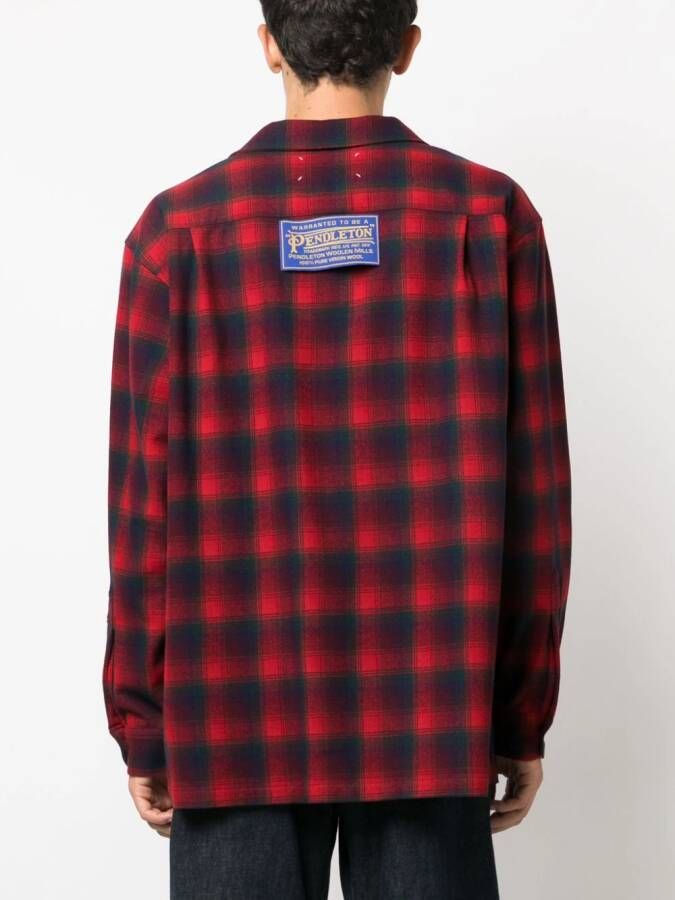 Rood, zwart, wol, gingham ruit, logopatch aan de achterkant, kenmerkend logo met vier stiksels, gespreide kraag, knoopsluiting aan de voorkant, lange mouwen en rechte zoom.