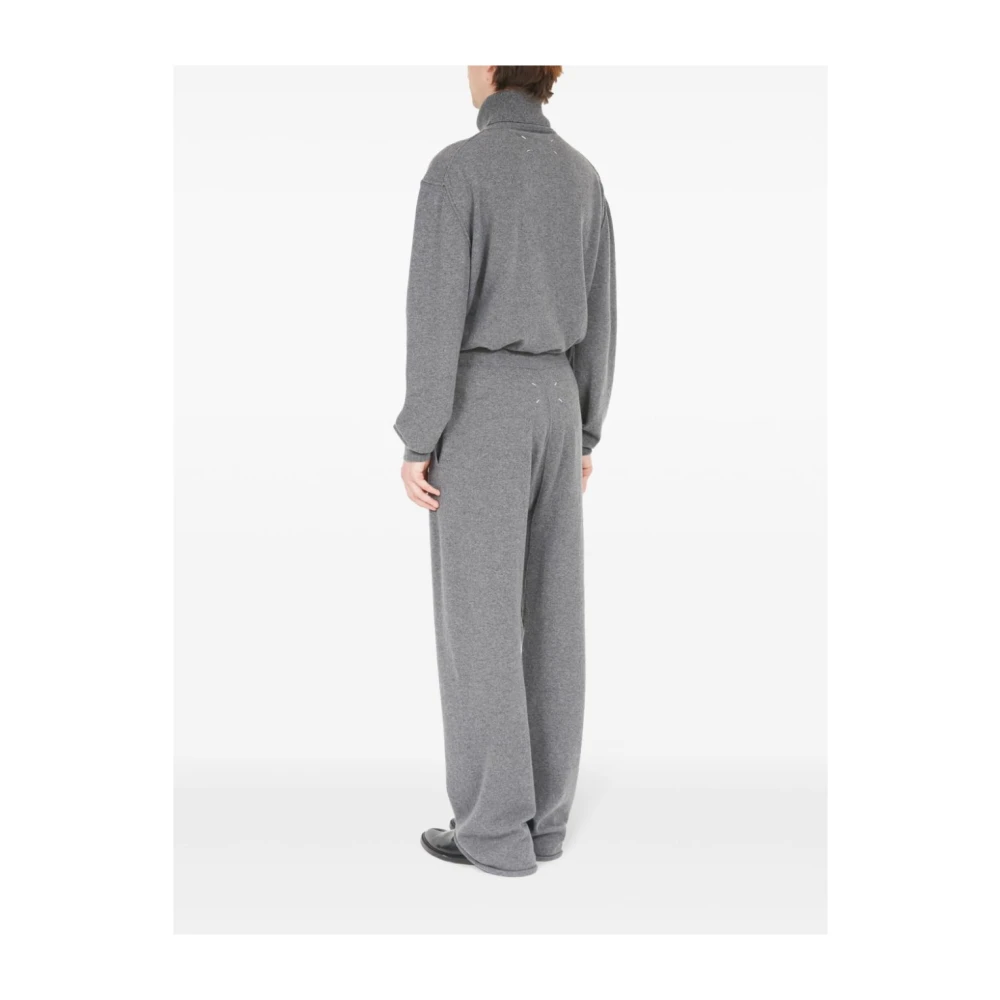 Upgrade je loungewear met deze Maison Margiela Grijze Wol Cashmere Sweatpants voor heren. Gemaakt van een luxe mix van 70% wol en 30% kasjmier, bieden deze broeken zowel stijl als comfort.