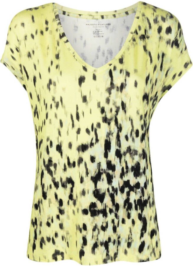 Majestic filatures Zwart V-Hals Zijdezacht T-Shirt Black Dames