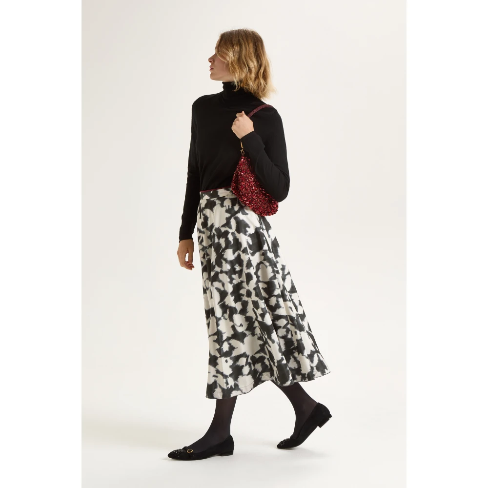Halve cirkel rok gemaakt van kostbaar jacquard, tailleband, zijnaad zak, rits bij de heup, hielbinding trim zoom, ongevoerd kledingstuk
